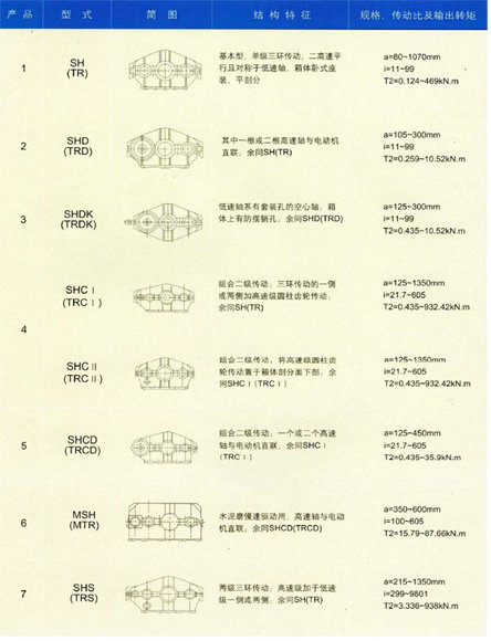減速器基本型結(jié)構(gòu),公稱中心距215mm,傳動比81,裝配型式111a,軸伸型式均為圓柱軸伸,標記為:減速器SH215-81-111a或TR215-81-111a(輸入輸出軸伸型式省略)。