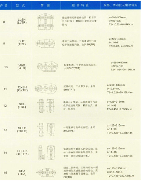 三環(huán)式傳動機構(gòu)自成體系,按基本型的單級傳動,增加高速與低速軸的數(shù)量或變更其相互位置,構(gòu)成若干派生型,單級傳動還可以串聯(lián)成多級傳動。